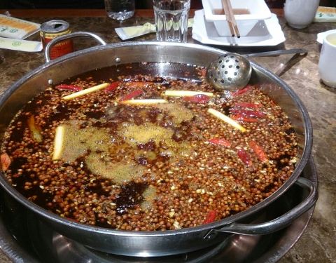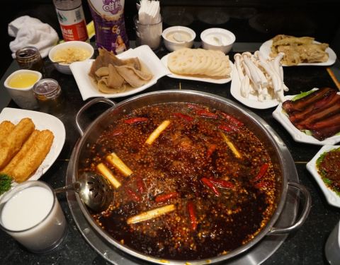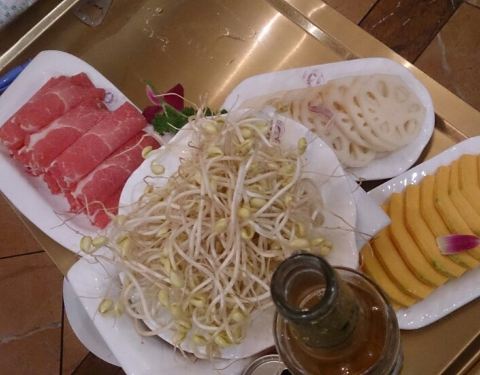 服务员看我们背着大包像外地游客,提出要不要先上微辣锅,觉得辣度不够再加辣。人家态度那么好,我们两个嗜辣者也就从了,当然试过辣度后果断要求加辣。重庆火锅,没点强烈辣度怎么能好吃。
