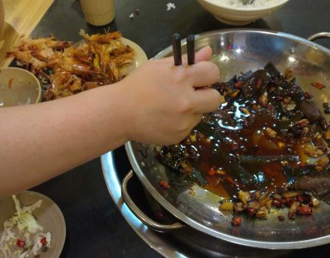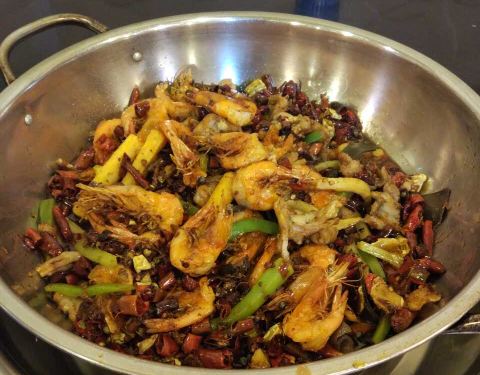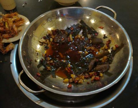 虾和肥肠都干净新鲜,干锅入味,肥肠还有一点脆,不过到最后越来越辣