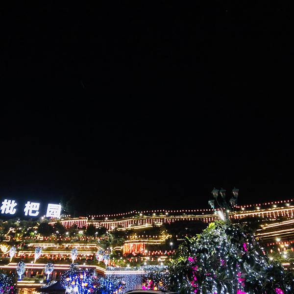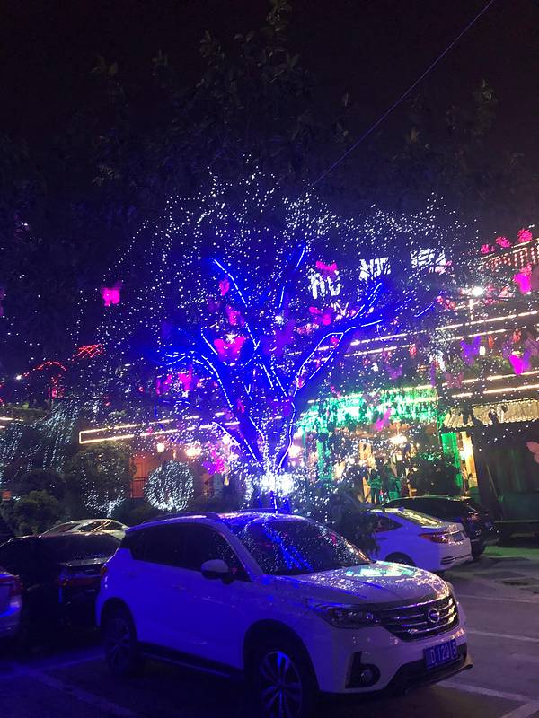 一棵树看完夜景快九点了,赶往枇杷园吃火锅。滴滴打车18.5 这里中国最大的火锅店,露天环境,坐在树林间吃火锅,夜灯闪耀一幅美景跃然眼前。价格也很合适,三人花费181,吃的很饱。超级推荐鸭血鸭肠 ,吃了还想...
