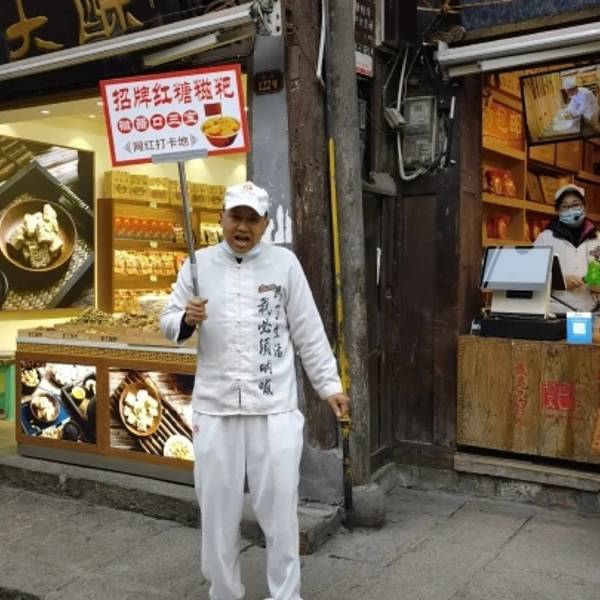 - 但是门口特别有特色,员工都非常卖力的,去吆喝去表演,竟然还有一个脱口秀—样的感觉,很多人都在那...