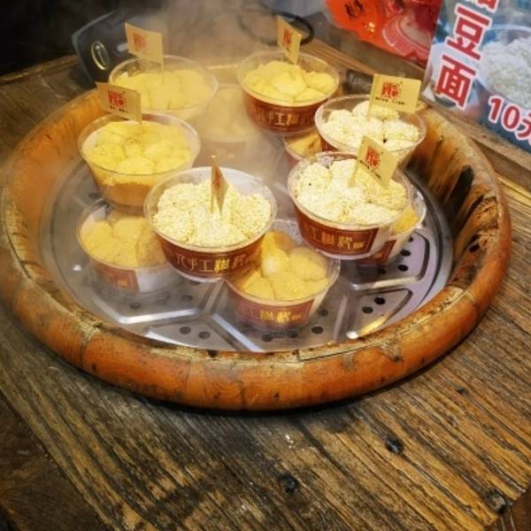 招牌红糖豆面糍粑是现做的,是热的。我个人爱吃软糯的东西,符合我的口味。裹上黄豆面,加上热的红糖汁,一口一个。别看碗小,一小碗也能饱肚子了。