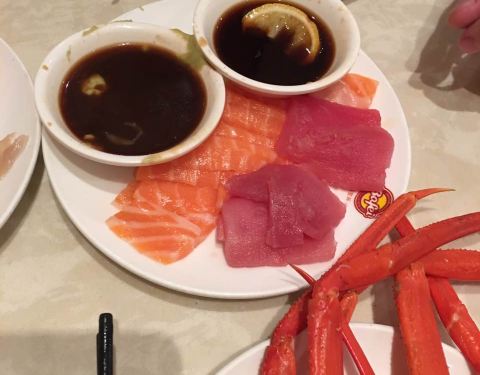 本来吃得挺愉快,结果在拿三文鱼的时候地上有水,清洁阿姨没擦干净就摔了一跤,膝盖破皮了……手上的鲍鱼也摔破了还好没划伤脸。一会我叫工作人员拿了酒精来给我处理,临走时就送了一盒甜点。服务态度还是可以,其他的菜品就那样吧,还是老样子。