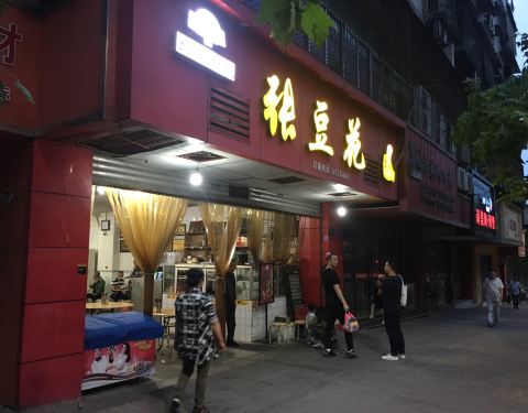 小时候来吃张豆花的时候,他们家还开在滨江公园对面的,现在滨江公园没得老,他们家也早都搬上来老