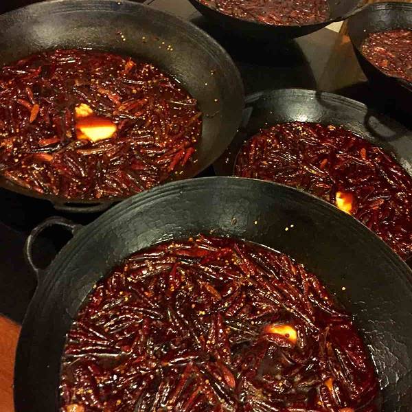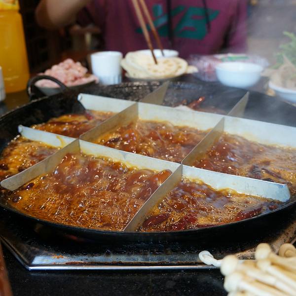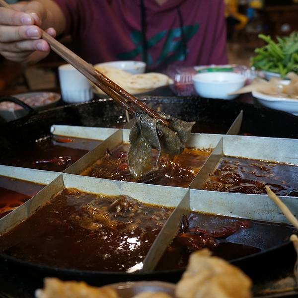 本地人追捧的重庆老油锅,锅底香辣且重口。