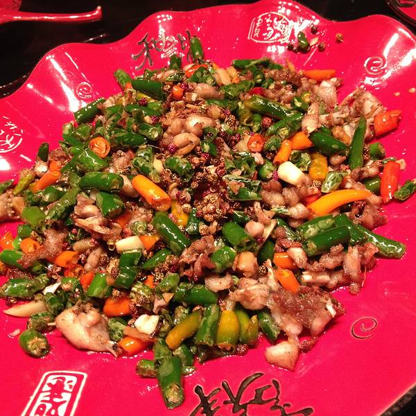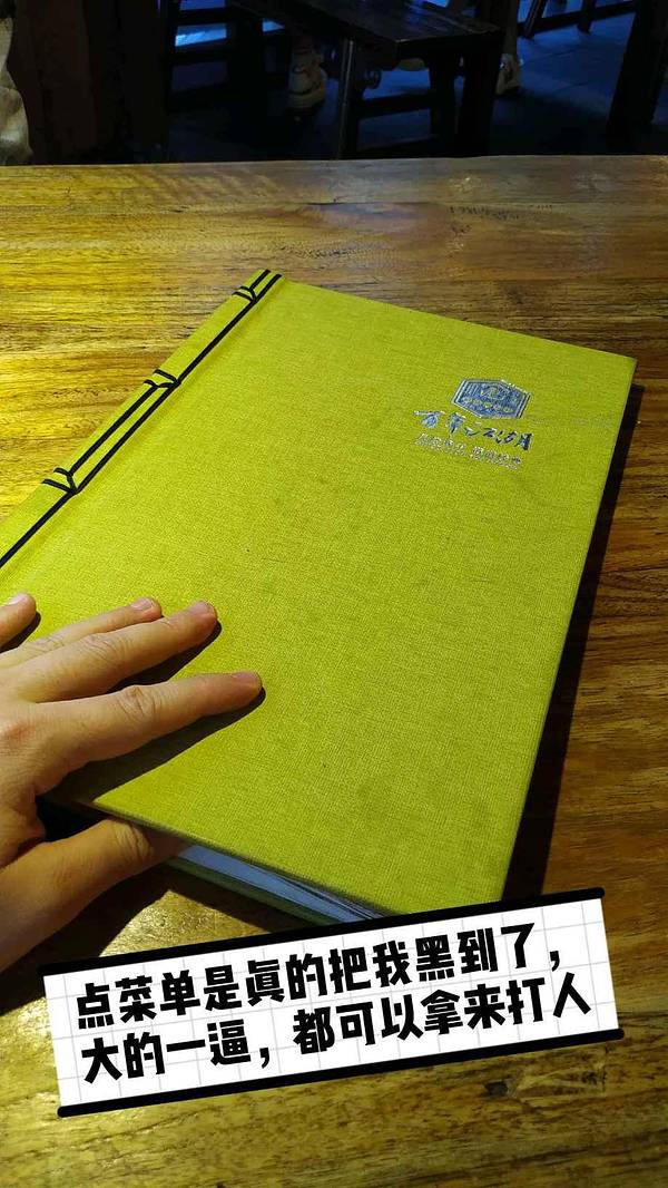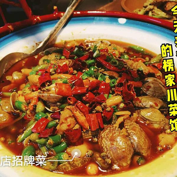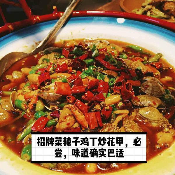 【彩虹屁要来了,大家都让一让】 今天来到渝北大竹林的一家川菜馆 听名字都很有江湖气息【百年江湖】 果然装修风格是浓浓的川渝江湖风 【大写的夸】 刚坐上位置就看到了 这水泥板般大的点菜单 深刻的怀疑是不是可以拿来打人用 比了一下桌子长度 我尼玛 居然比我一米八五身高 配套起来的右臂还长 【小写的夸】 先上的是招牌美食 辣子鸡炒花甲 一口下去 嗯,不错 浓浓的川菜味 特别特别香辣 特别特别好吃 搞