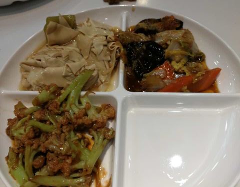 方便快捷,菜式丰富,就是饭给的太少了,男的不够吃