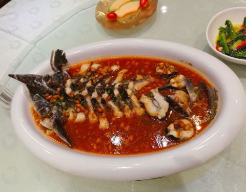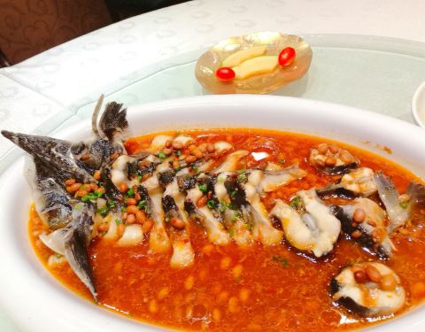 菜品的味道蛮不错的 从东北特意来镇江吃河豚 点了一份野生河豚 老师傅来桌上给大家品尝一下 证明没有毒 味道也很好 推荐