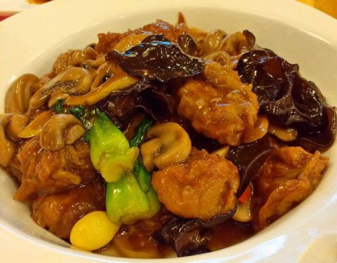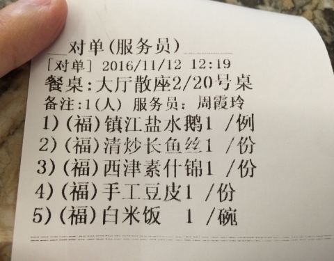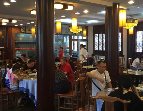 来到镇江,不吃镇江菜怎么行?所以在客栈周围那么多饭店中选了这家。两个人点了两个狮子头,一份素菜包(4个),酸豆角虾,一块淆肉,一份鸡汤豆腐干丝才154元,性价比很高