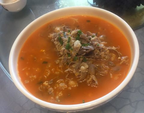 餐厅名字很霸气,不过菜的水准正如点评上的排名。 本来还想吃一顿西津会,可惜12点的时候还要排,就怕赶火车时间来不及,选择了隔壁的镇江菜馆。 点的基本上都是推荐菜,「镇江香醋排」用镇江香醋做的,醋味很浓郁,排骨选的肋排,还蛮好吃的。「蟹粉狮子头」狮子头味道还不错,可惜我是怎么也没吃出来蟹粉,25块一个价钱不便宜,但是没吃过的话点个吃吃不错。「鲜豆皮」用新鲜的豆腐皮做成的,蘸上镇江的酱油和醋配的调料,新鲜Q弹。「红烧江白鱼」鱼肉味道是满嫩的,就是刺稍微有点多,微辣的红烧烧法。 「酸汤肥牛卷」这个菜真是超级怪的口味,而且肥牛的质量不怎么好,用的是比较差的肥牛。 服务员基本都是阿姨大姐们,服务还算过得去吧,上菜速度不错。