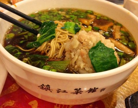镇江菜馆位于云台山下,紧挨着西津渡古街,交通十分的方便。故名思议,镇江菜馆是一家以经营本地菜肴为主的餐厅。镇江菜馆早餐在当地相当有名,许多本地人都会在早上专程开车到这里吃一顿美味的早餐。其中镇江菜馆包子最出名,特色的包子与市面上的有所区别,因此被人们所钟爱。店堂开阔,分上下两层,楼下是大堂,楼上有包间,非常舒适漂亮。