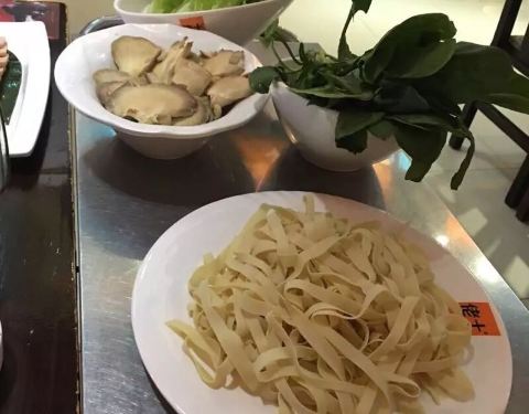 还不错 蔬菜分量挺足的 肥牛肥羊菜单上找半天 鹅肠很不错