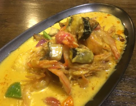 - ...香菜黄咖喱虾、黄咖喱牛肋条,黄咖喱香而不辣,适合大众口味,这两道菜都非常好吃,黄咖喱还非常下饭