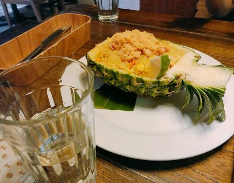 个人认为很好吃的一家泰国菜餐厅,虽然和泰国的口味稍有不同,但是很符合我们的口味,是我更能接受的~咖喱虾不是用大头虾做的,但是价格便宜了很多,我汤汁泡米饭一级棒,这个新品的猪梅肉好吃,汁水很丰富,吃烧烤的感觉~香茅草炒饭也好吃,服务和环境都好