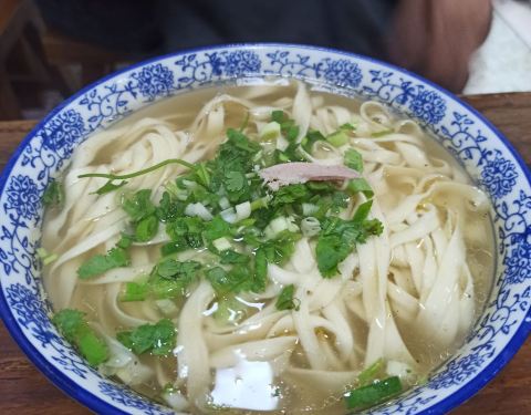 回味抻面,大名鼎鼎呀,终于找了个爱吃面的陪我一起来~中午十一点多已经很多人了,好在店家给力,安排座位,拼桌是常态~进门就问要大碗小碗,宽的细的,基本落座面就上来了,汤和面都还是不错的,就是对于我来说,哪家抻面都有点咸~一碗面搭配个炝拌菜,阴雨天觉得很舒服