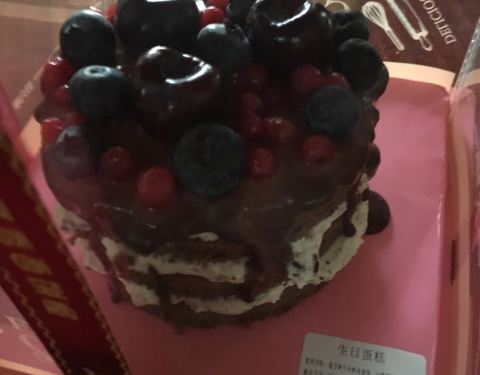 桂林路的这家店满满的都是曾经省实验人的回忆。现在重新装修了。点评活动换了一个四寸的暗夜精灵蛋糕,包装非常精美。蛋糕的样式也很漂亮,上面点缀着樱桃和蓝莓,巧克力味的,夹层是奶油的,味道挺不错的。