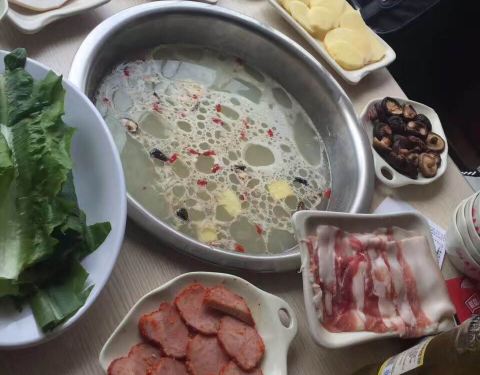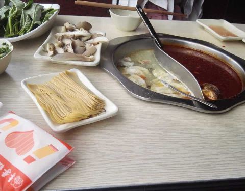 食堂火锅店,二十多味小料,自由搭配。