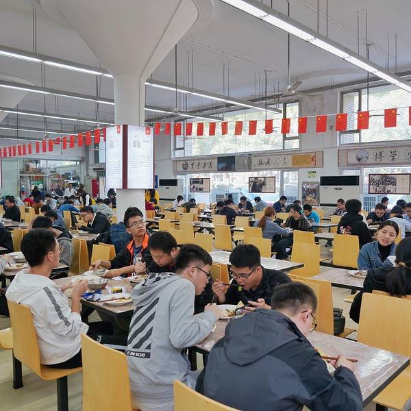 湖南大学第五食堂,坐地铁到“湖南大学站”出来,就是岳麓山的山脚了,不远处就是湖南大学第五食堂,一楼有对外开放,先到门口小卖部买票,两荤一素是15块。普通食堂餐,就不要有太高的期待了。倒是可以再爬岳麓...