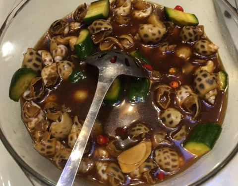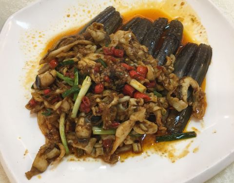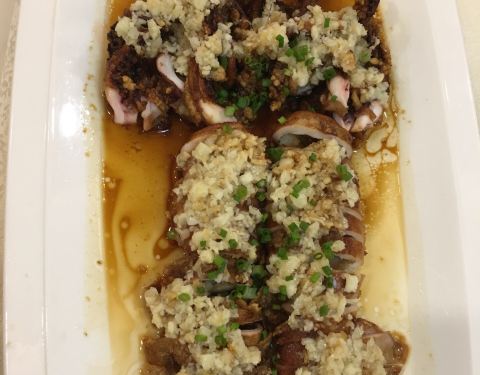 去吃过很多次,因为离单位很近。朋友请客,早早去点了菜,蒜香鱿鱼,清炒圣子王,砂锅淮山,擂辣椒皮蛋,肉炒肉,风干鸭,雪里红排骨,花螺等等,没有点蒸海鲜,吃得太多了。味道都还不错,最喜欢蒜香鱿鱼,擂辣椒也不错。