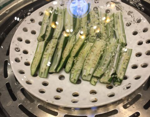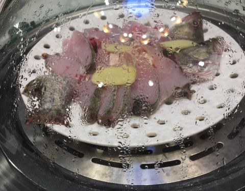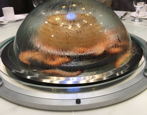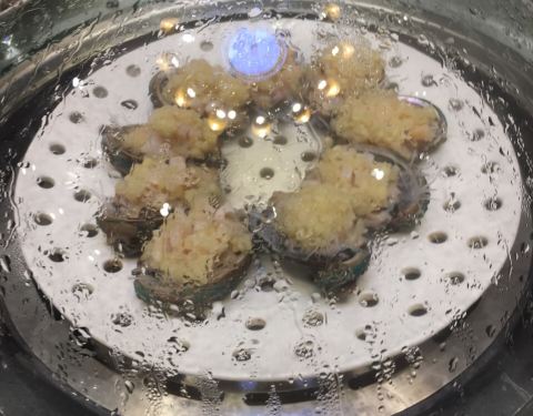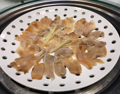 好久没到盛记吃海鲜了,最近听说店里新增加了现场蒸海鲜的新做法,于是来看看新鲜。果然有点意思,桌上安装了一个蒸炉,可以亲眼看到活着的海鲜被蒸熟,保证新鲜。吃起来不用任何调料也不错,带有淡淡的甜味。