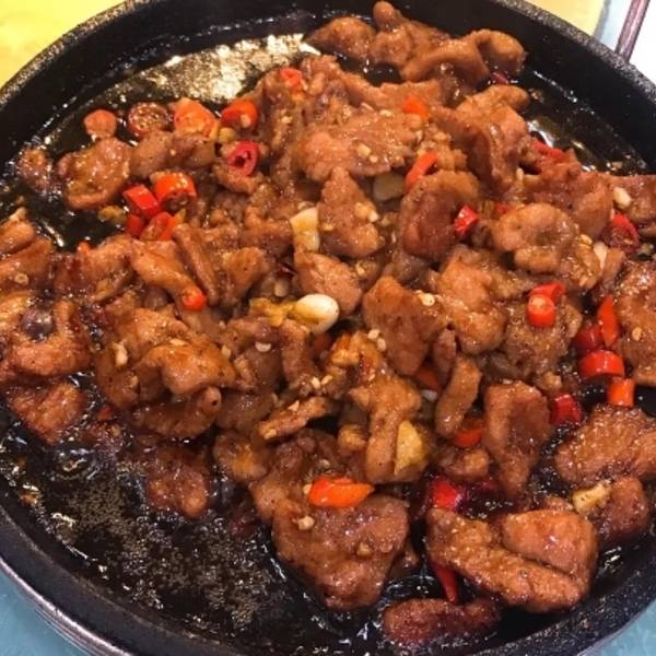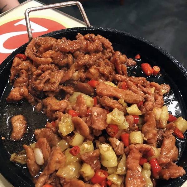 「铁板鹅肉」必点菜之一,每桌来吃的都会点,上菜的师傅一般从厨房出来手上盘子里都有不下5份同时传送。如果你不太能吃辣,那么这个菜吃起来可能会有点辣。肉嫩鲜香,入口辣椒的香味夹杂肉的鲜味,是个优质的下饭菜