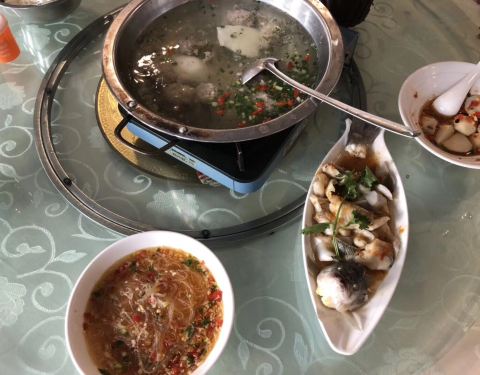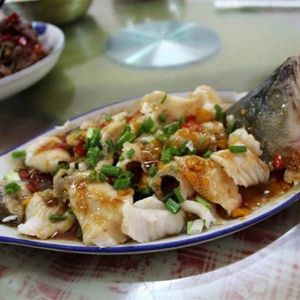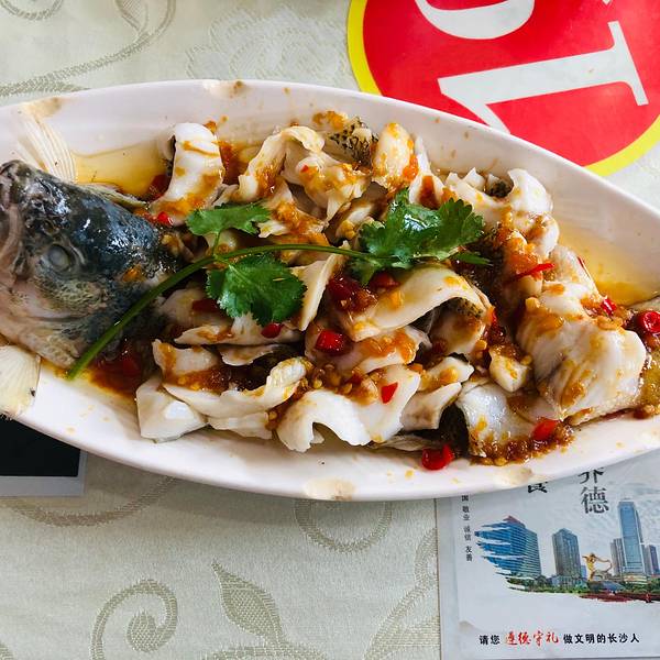 本地人推荐的餐厅,特意过来尝尝。这家店在二楼,排队的人多到一楼三楼都坐满[捂脸]好在运气还算不错,加上翻台率很高,等了大概半小时吧 特别要推荐鲈鱼,真的很好吃!整条鱼剔掉刺,只有鱼肉和鱼头鱼尾,鱼肉非...本地人推荐的餐厅,特意过来尝尝。这家店在二楼,排队的人多到一楼三楼都坐满[捂脸]好在运气还算不错,加上翻台率很高,等了大概半小时吧 特别要推荐鲈鱼,真的很好吃!整条鱼剔掉刺,只有鱼肉和鱼头鱼尾,鱼肉非常嫩,汁水配合了剁椒的鲜香,使得整条鱼都很美味。来这家店必吃!其他菜就一般吧,看自己喜欢点。 值得一提的是,点菜很有特色,基本上老板娘都帮忙安排好了,直接推荐点哪些菜,速战速决