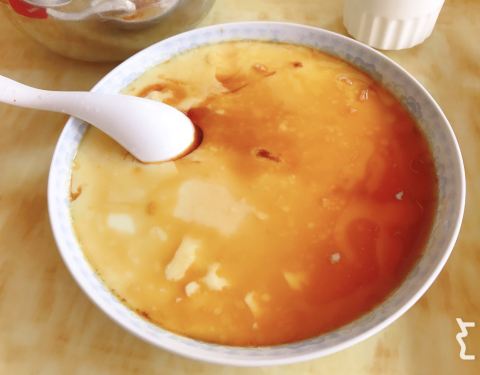 「石灰蒸鸡蛋」很家常的菜,因为另外两道菜比较咸鲜,所以这个蒸蛋刚好中和口里的咸,清淡得好