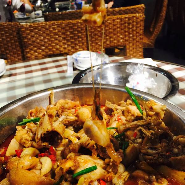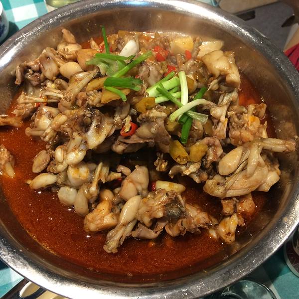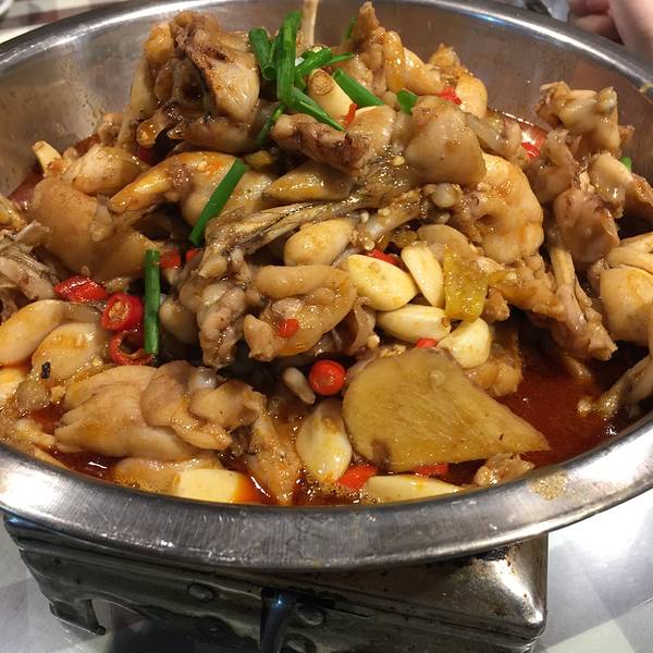 有部分人是很怕吃这个的,我感觉也还好,服务员态度一般,收拾餐桌磨磨唧唧的,桌子太油让多擦一遍都很不情愿的样子,牛蛙是一整锅的上桌,红彤彤的辣椒油,一边加热一边吃,肉质很嫩,很入味,腿也很肥美的,茄...有部分人是很怕吃这个的,我感觉也还好,服务员态度一般,收拾餐桌磨磨唧唧的,桌子太油让多擦一遍都很不情愿的样子,牛蛙是一整锅的上桌,红彤彤的辣椒油,一边加热一边吃,肉质很嫩,很入味,腿也很肥美的,茄子煲好吃,鱿鱼就有点硬了,不怎么好吃,水平一般,有待加强。