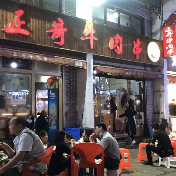 说到长沙的牛肉串不得不提-正哥牛肉串(太平老街店)。你说他是烧烤店吧?我觉得不能完全算!平时吃的烧烤店,菜单拿出来那都是一张A4纸写不下的品种,而这家店品种真的很少,他们家只有牛肉串和鸡翅膀。来了没得选,就这两样开搞!跟上面胡记炸炸炸一样都在太平老街里面,就相隔一个巷子 📍地址:长沙市天心区解放西路的太平街牌坊进入后走大概20m第一个路口左边走进金钱街43号 ⏰时间:下午4点开始营业 💰价格:人均40元 🖍店面环境。。。emmm长沙不少老店都没有环境,这家店也不例外,吃的就是口味。走进巷子里很容易找到这家店,高峰期可以看到店外熙熙攘攘排队等食的人,即使有位置也不过就是店外的几张凳子当桌子,可以说是十分简陋了,但是一点也不影响他家的热乎劲!店里菜品就两样-牛肉串和鸡翅。如果第一次去吃的话可以都点上试试。个人认为鸡翅膀偏咸,牛肉串适口性更好。因为猪瘟的原因牛肉涨价了,所以店里的牛肉串涨到了10元/串,鸡翅膀是12元/串,门口的价格牌上除了这两个品种,剩下的就是酒水饮料了。一般正常来说不算酒水人均50元左右可以吃饱了。