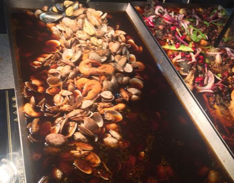 熟食里面煎牛排和羊肉串味道不错。性价比还是挺合算的,食物种类也算蛮多了。海鲜的话小鲍鱼和虾也还可以