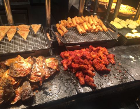 万达茂里的美食几乎排队人都很多,这家多伦多海鲜自助餐厅,四点半的时候去排队已经叫到快30号了。总体来说性价比还是不错的,海鲜种类虽然不是很多,不过其他熟食种类也还算比较多,烤鸭叉烧羊肉串什么的也都有。饮料品种也比较多,他们家的冰沙味道还不错。还有水果点心和哈根达斯。
