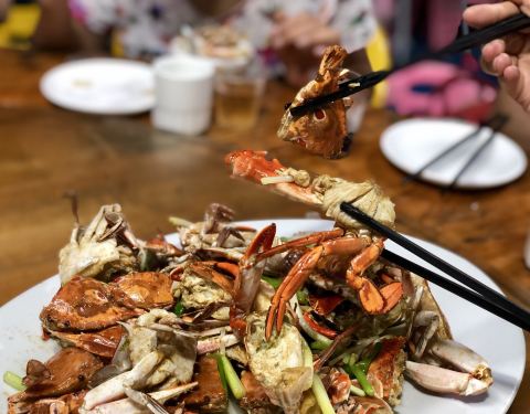 ...,主要菜品有九节虾、海胆炒饭、炒花甲、炒花蟹等,海鲜新鲜,份量足,人均消40至50元,值得推荐