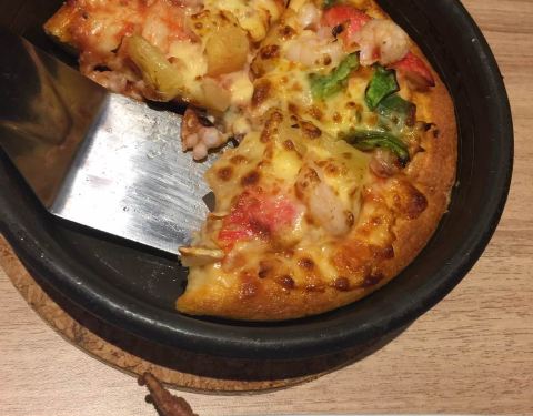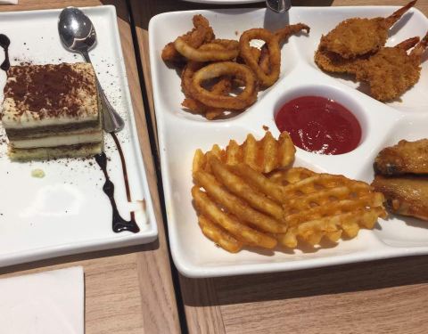 挺好吃的披萨,牛肉焗饭,牛扒。这新装修了,人真的很多,很炒。环境不错,挺好。
