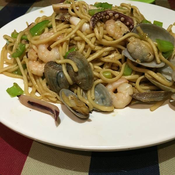 【点评】:刚进餐馆看着装修风格特别文艺小清新,没想到坐下来一看菜单居然是这种餐馆,中西结合各种混搭的菜肴,有西式的意面简餐、中式家常炒菜、海鲜类的菜品,在这里你可以点一桌子菜,也可以独自一人只吃一碗面,算是给了孤单的人一个可以不尴尬就餐的地方。他家的口味还算不错,海鲜不贵也很新鲜,贝壳类的也没有沙子这一点特别的好,推荐这里的鲅鱼水饺,鲅鱼水饺算是山东沿海这边的饮食特色,把鱼肉做肉馅的饺子还是第一次吃,口感独特味道鲜美。
