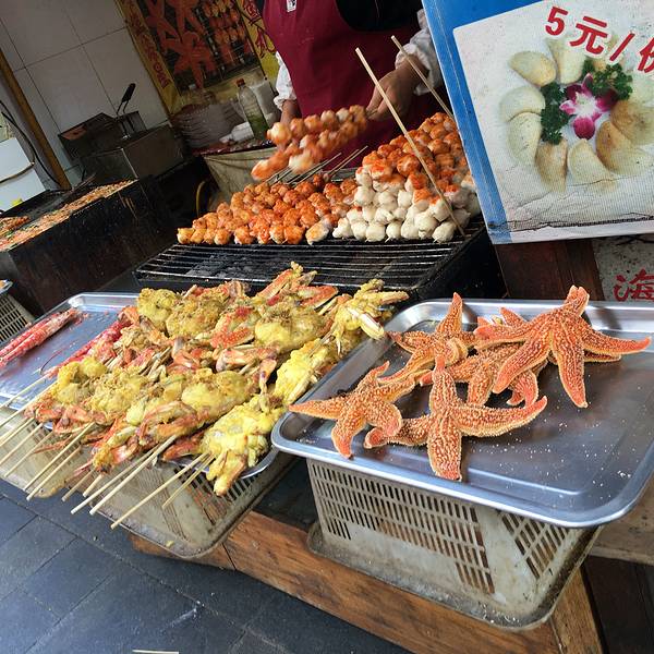 找这个地方找了好久,原来就是一个店面进去,这是最古老的一天街,里面什么小吃都有,去了青岛这个地方必去的,超级喜欢这,大赞,美食控一定要去,位置在青岛国贸正对面,中山路一直忘前走