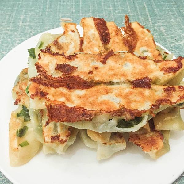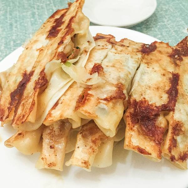 - 然后我俩一致觉得还是有肉的比较好吃……。来到高家锅贴,点了一份素虾仁锅贴,一份肉虾仁锅贴
