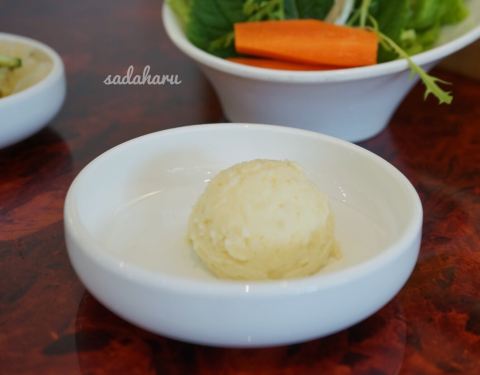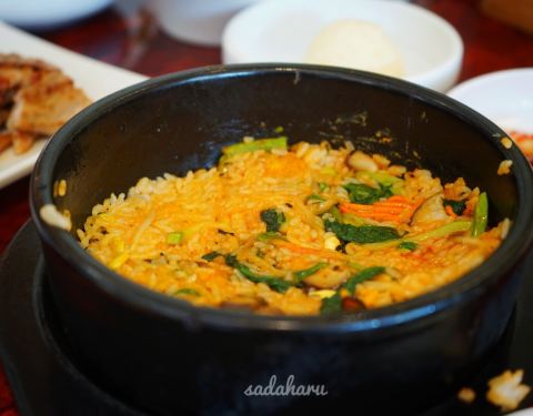 点了一份烤肉、石锅拌饭、芝士炒年糕,小菜给了一大堆超级丰富。 【烤肉】都是在厨房烤好剪开直接端上来,避免了油烟。 【石锅拌饭】料比较多,要的微辣,辣酱量足,拌饭绰绰有余。石锅拌饭配的躺比较一般。 【小菜】小菜有十多种,里最喜欢土豆泥、凉拌鸡肉丝、炸切条、南瓜粥。还有两种蔬菜沙拉,比较丰富。 整体还可以