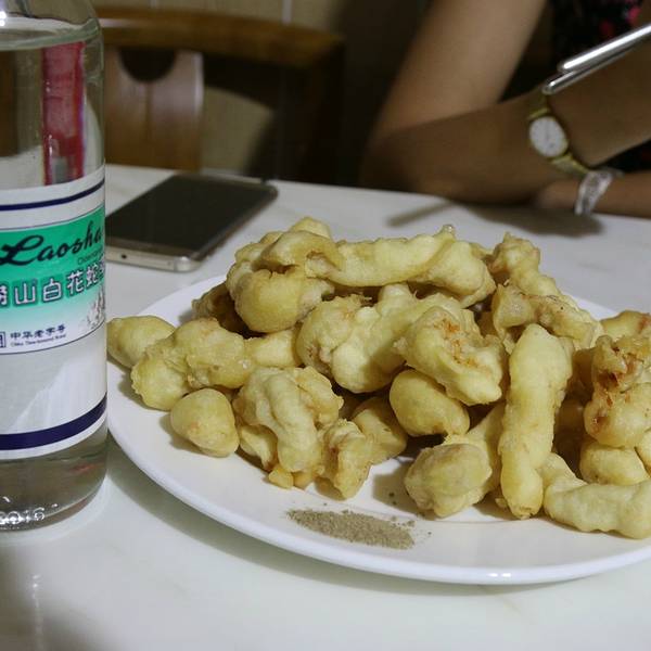 海洋大学鱼山校区 华春的门头给撸了 也没挨上号 但1986年开业的龙福祥迎接了我们 炒肝尖嫩的啊、里脊两吃的干湿料都是后加工过的、酸辣汤白醋做的、不锈钢餐具让我想起了印度...