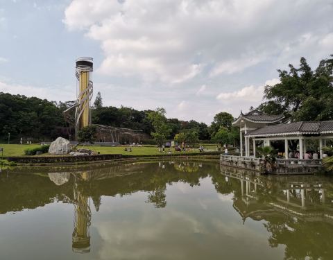 在佛山市顺德区龙江镇。是一个免费开放的山地休闲体育公园,有很大的草坪和各种体育设施如游泳池篮球场足球场,也有一些有意思的雕塑。