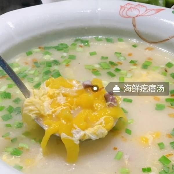 海鲜疙瘩汤黄黄的是面疙瘩,很Q弹,口感不错,汤也很鲜。