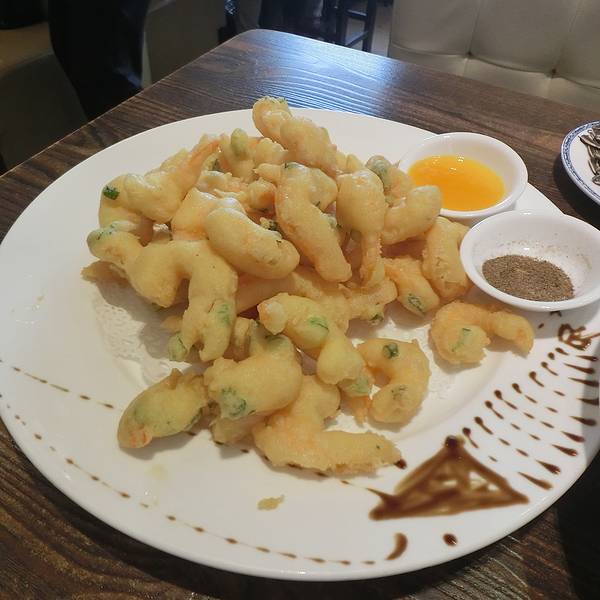 但是炸虾仁真的推荐点!很好吃 !趁热吃! 青岛的菜感觉分量都很足!炸虾仁两个人根本吃不完。沾着橙汁酱居然特别酸爽!