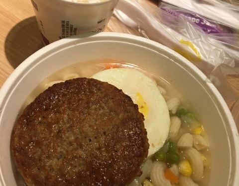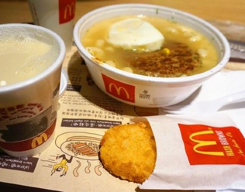 住在铜锣湾,早餐时间开门的店不多,就到麦当劳吃早饭,交通便利。扭粉泡在汤里口味清淡,不喜欢。薯饼倒是蛮好吃的,但没有特别。