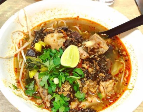 进了粉面屋,粉面价格亲民,我点了个最贵的浓汤冬阴功海鲜河粉。没有很咸,椰浆味非常给力,炒贵刁也是炒正宗的曼谷味棒棒哒! 在蔡澜的书里看到过。冬阴功粉,汤水味道浓郁。游船河,猪血汤底,加以猪肉丸子、猪肝、猪肉片,味道很特别,尤其几片金不换叶子的香味,瞬间叫醒味蕾。 龙眼冰超好喝深圳都喝不到哒~偶尔来一下这边比直接飞泰国经济实惠得多哈哈