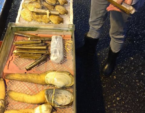 - 还有海产的干货,咸鱼虾干之类的,最多的就是海鲜了,超大的海鲜比如:濑尿虾,海虾,鲍鱼,长脚蟹,象拔蚌金骆驼