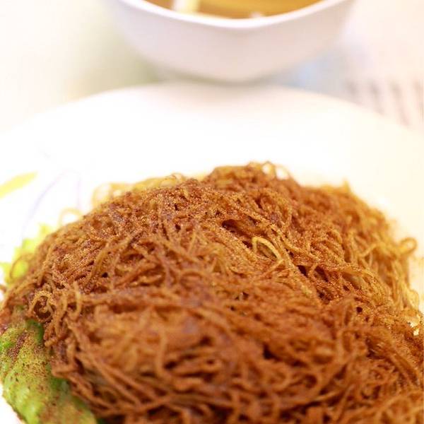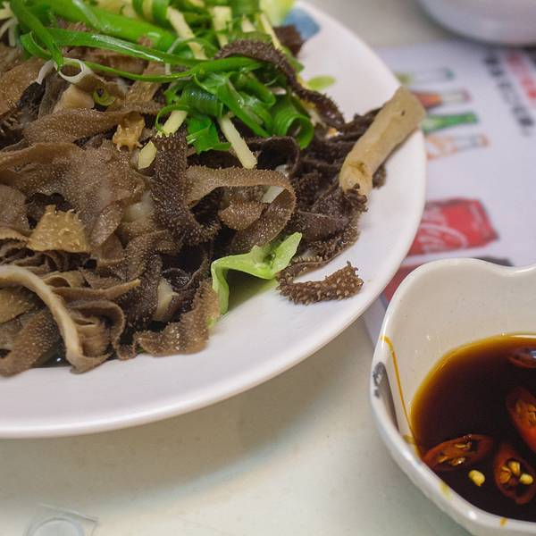 每个桌上都会放一罐泡白萝卜,简直全场最佳!白萝卜酸辣甜,而且完全没有本身的萝卜臭,既可以作为开胃小菜,也可以作为吃面时的解腻武器。竹升面是用鸭蛋来和面,再经过很长时间竹竿的手工压制,可以很明显的吃出面的韧性。虾籽捞面口感略干,面应该是有加老抽调味,但还是很干。百叶一般,和北京的爆肚相比火候控制不好,明显涮过了,咬都咬不动。云吞面更受女孩子们的欢迎,按传统的摆盘,最下云吞垫底,放上勺子,再放面条,面条要正好把下面的云吞都盖住。上面这么素的面肯定不会是我点的,牛筋牛腩捞面才是我的菜,牛腩牛筋给的超多,吃起来非常过瘾。点完才想到后面还有两家餐厅呀,努力!现在能吃到手工版竹升面的餐厅越来越少了,如果行程中会前往深水埗,还是挺推荐来这家尝尝的,专门来一趟倒是不必,另外有几家比如沾仔记也很不错哦。