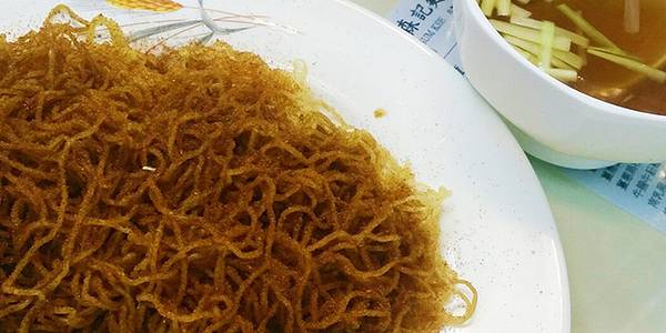 - 刘森记面家,自制竹升面,非常正点, 据说是用新鲜大地鱼熬煮的上汤,以及画龙点睛的香口韭黄
