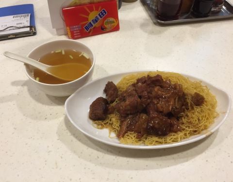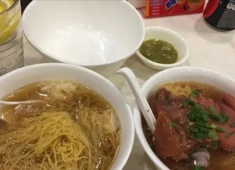 面馆环境不错,炸云吞港币33元。这一区是殡仪馆聚集地,住的酒店旁边就是