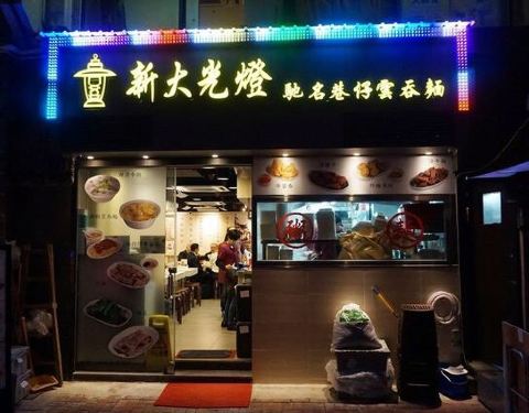新大光灯云吞面餐厅位于香港九龙红磡的必嘉街,如果不是因为住的酒店就在附近估计也不会到这。这一区是殡仪馆聚集地,住的酒店旁边就是。面馆环境不错,炸云吞港币33元。