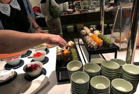 首先就找三文治, 沙律, 凍肉, 芝士, 壽司, 跟刺身吃. 如刺身很新鮮, 三文治的配搭也合宜.熱盤是這裡的強項, 當中就包括不少中菜, 如宮寶大蝦, 麻婆豆腐, 上湯雲吞, 炒飯等等, 口味都是一流.其他熱盤也各有特色, ...