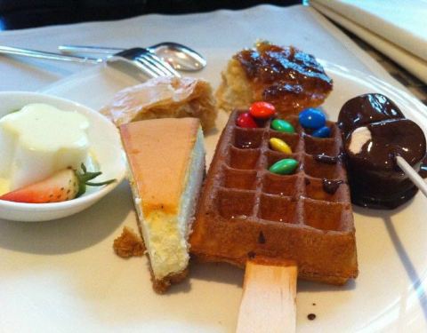首先就找三文治, 沙律, 凍肉, 芝士, 壽司, 跟刺身吃. 如刺身很新鮮, 三文治的配搭也合宜.熱盤是這裡的強項, 當中就包括不少中菜, 如宮寶大蝦, 麻婆豆腐, 上湯雲吞, 炒飯等等, 口味都是一流.其他熱盤也各有特色, 有來自不同菜系的選擇, 如咖哩, 懂吃的就知道這裡的師傅做咖哩是有一手的. 甜品方面, D法式西多士伴楓糖漿, 跟奶油脆豬就是這裡下午茶的皇牌, 繼續有水準.其他甜品方面, 麵包布甸, 芒果奶凍, 以及Mövenpick雪糕皆是推介之選.整体下午茶自助餐, 價位合理, 選擇豐富, 吃完下午茶, 晚餐也不用吃呢.呵!