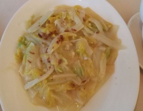 苔条小黄鱼味道很不错,鱼刺几乎剔得没有,裹上番茄酱完美!奶油津白其实就是奶油味的煮白菜,味道一般。黑松露虾仁可能期待得有点高,感觉一般。